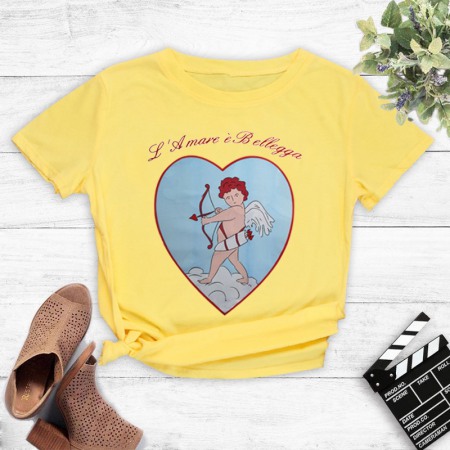 Casual Fashion Street Fashion Cute Angel Love Plus Size Printed T-Shirt Women