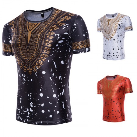 Fashion Male Creative Ethnic Style Floral 3D Printing D Short Sleeve T-Shirt