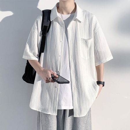 High-Grade Drape Ice Silk Shirt Men's Short-Sleeved Loose Shirt