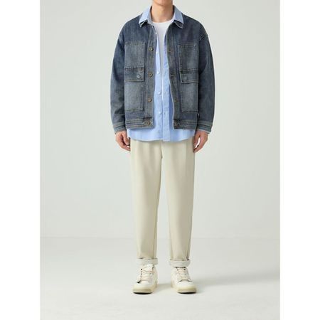 Pu Leather Jacket Men's Loose Casual Retro Parka