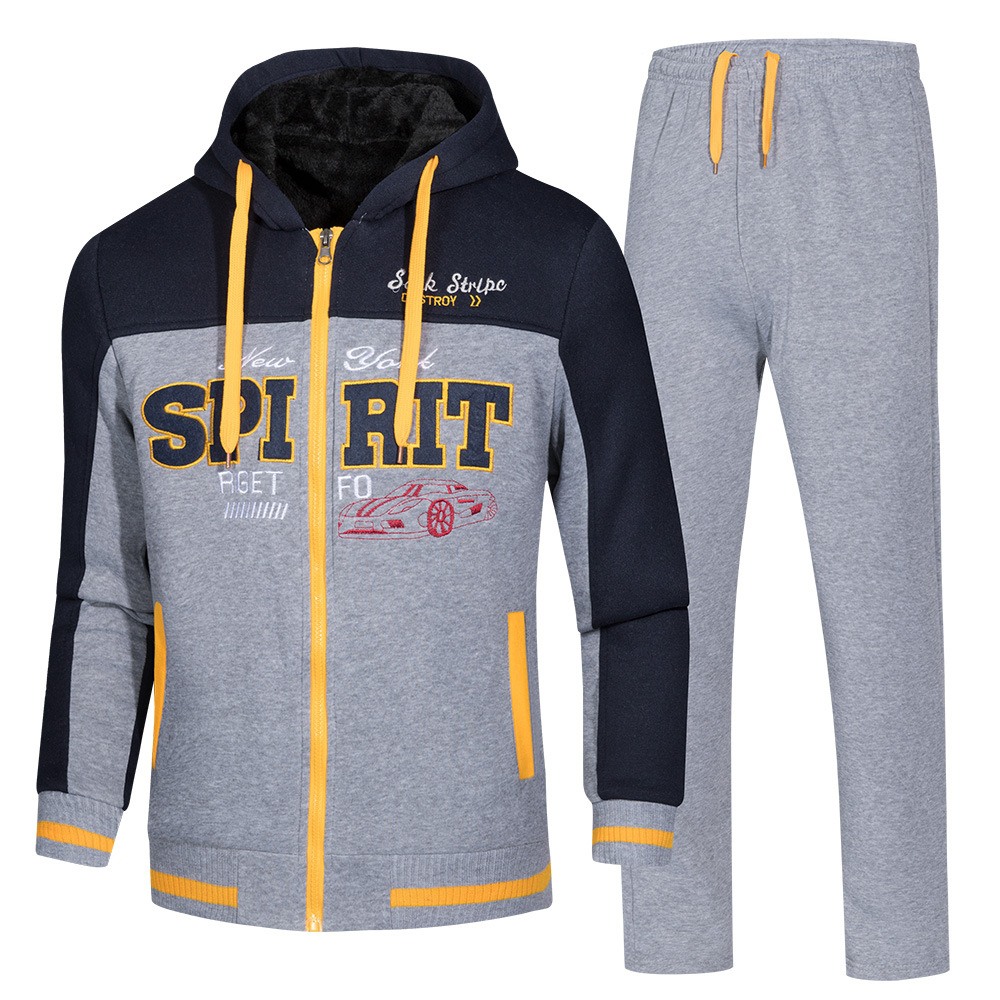 Men's Thick Stitching Sweater Suit Winter Warmth and Fleece