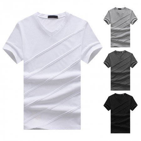 New Summer Men's Short-Sleeved T-Shirt Mens Contrast Striped Slim Casual T-Shirt