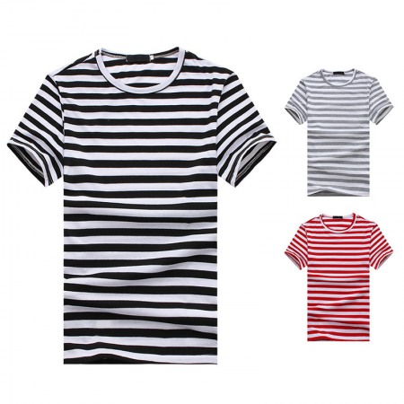 New Men's Large Size Striped Short-Sleeved T-Shirt