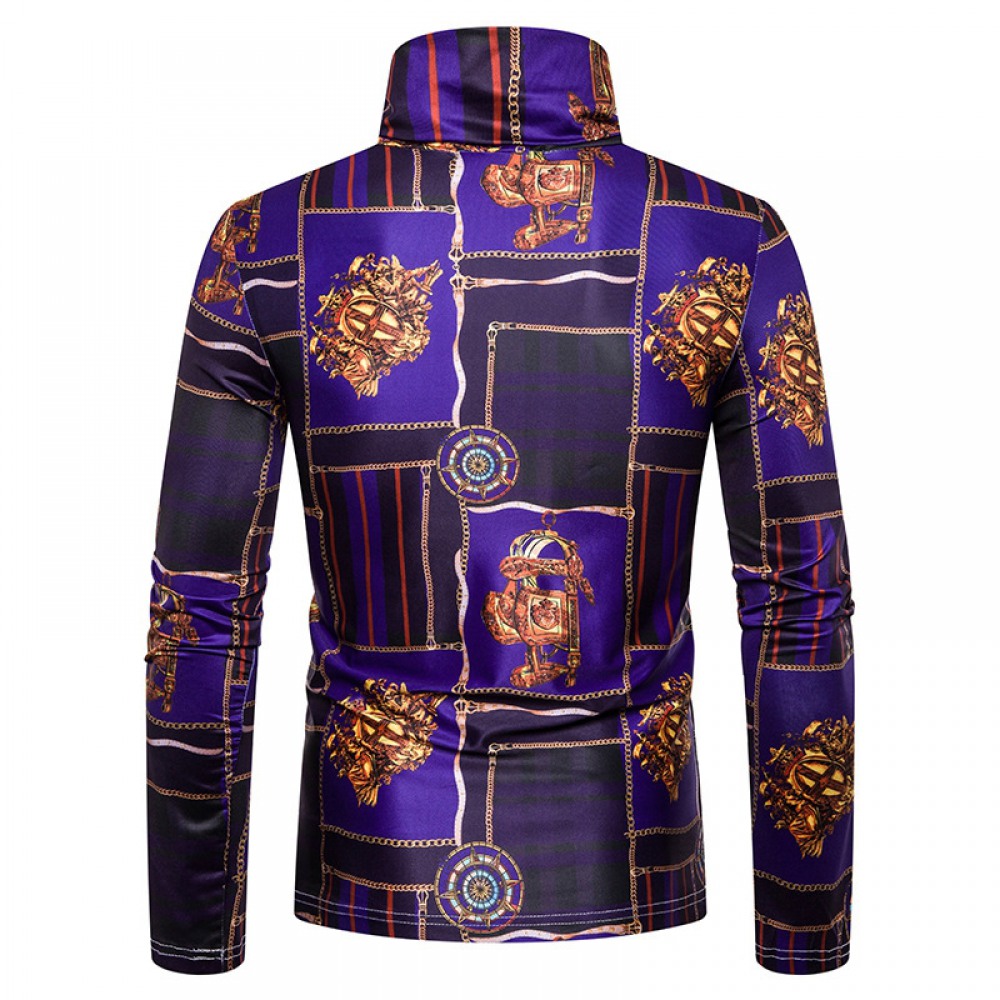 New Men's Plus Size 3D Classical Pattern Printing High Neck Long Sleeve T-Shirt Bottoming Shirt