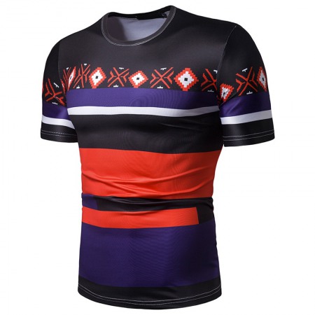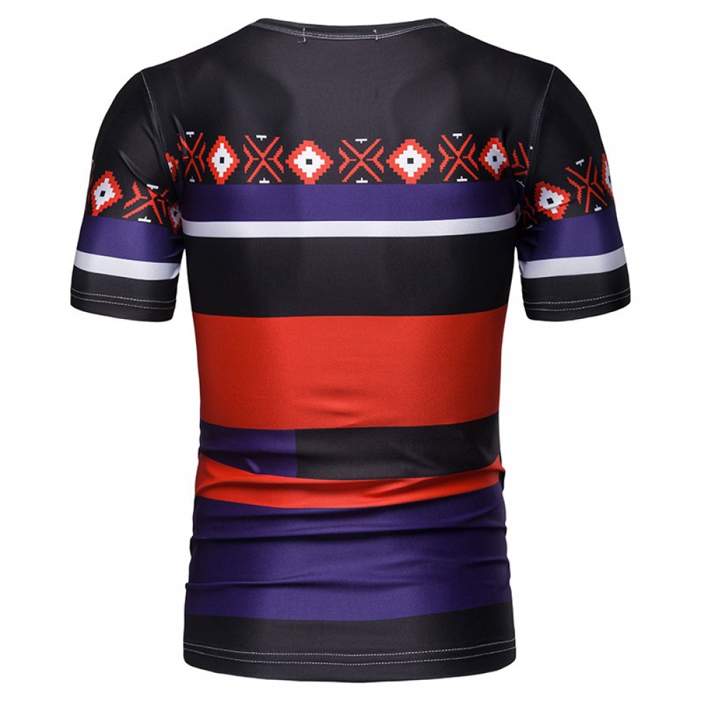 New Men's Large Size Striped Short-Sleeved T-Shirt