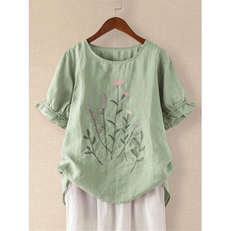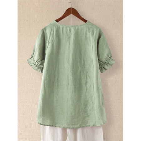 Printed T-Shirt Cotton and Linen Casual Short Sleeve T-Shirt