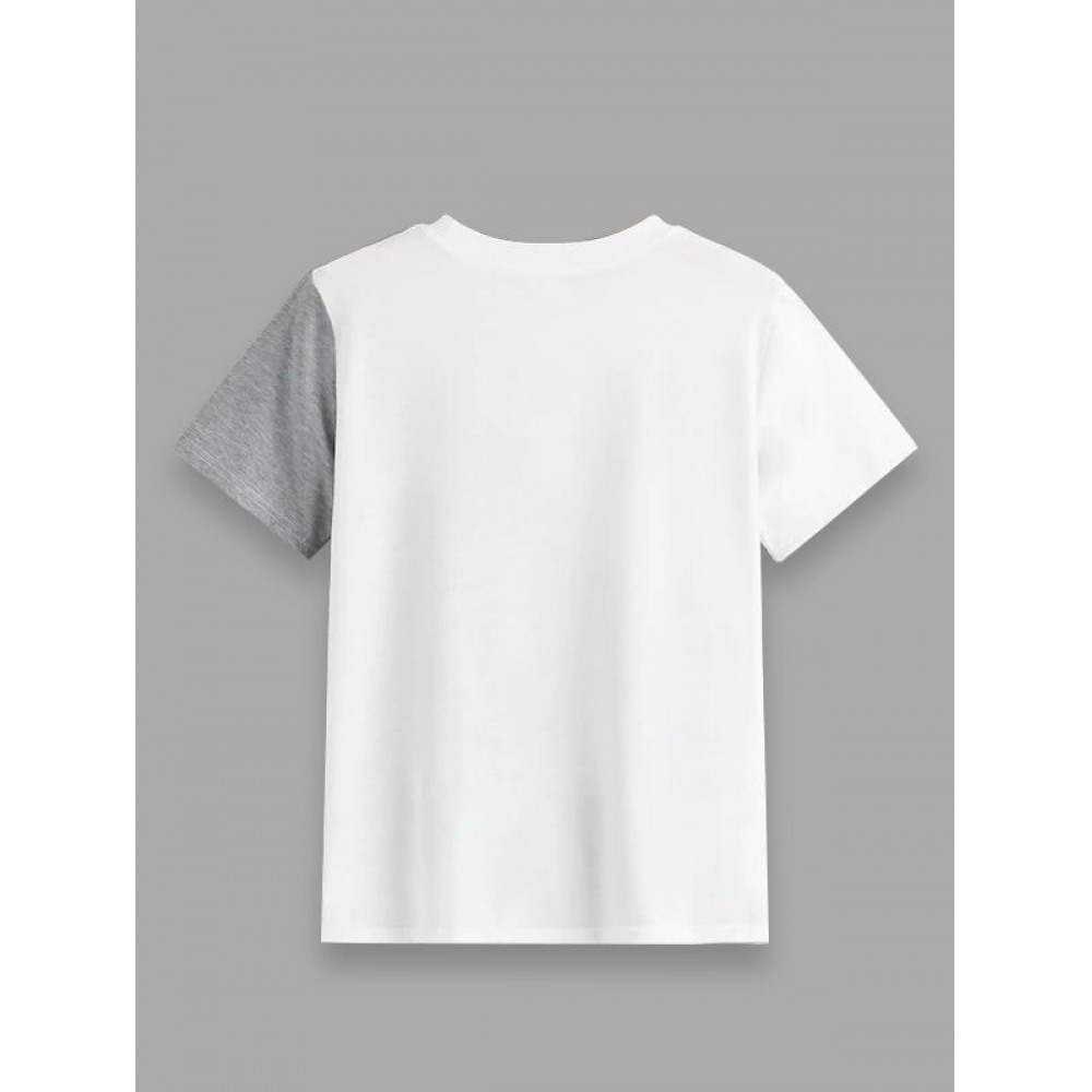 Color Bar Contrast Short Loose T-Shirt