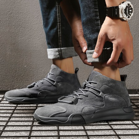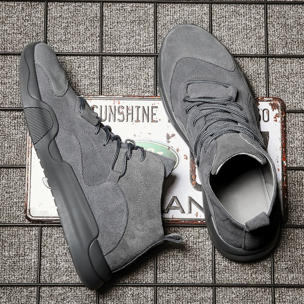 Autumn Men's Shoes New High-Top Leather Sneakers Men's Casual Martin Boots Trendy White Shoes