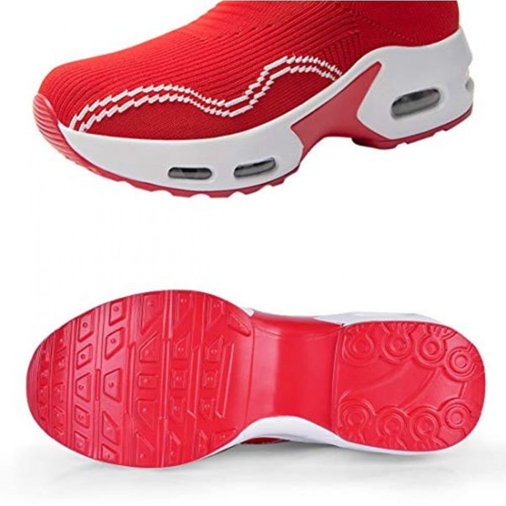 Womens Walking Shoes Sock Sneakers Slip On Mesh Platform Loafers Comfort Wedge Walking Shoes Red