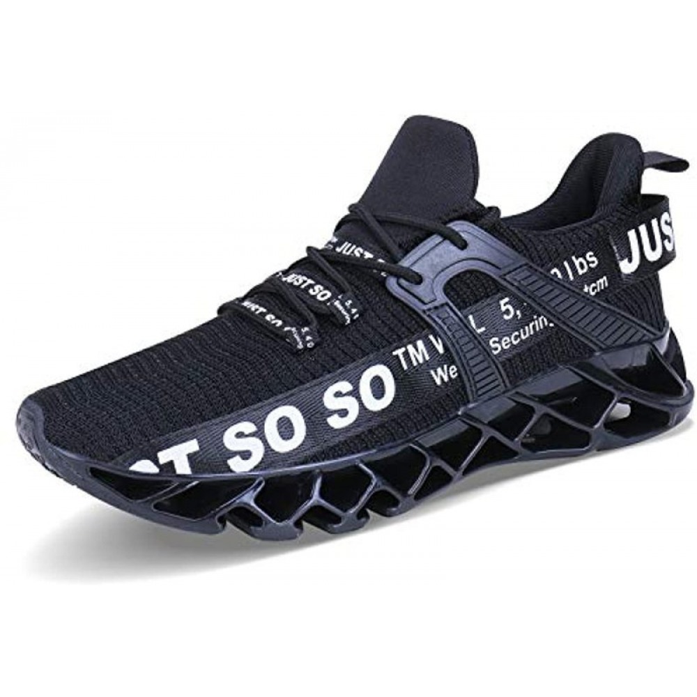 Mens Runing Shoes Walking Non Slip Blade Type Sneakers Black White